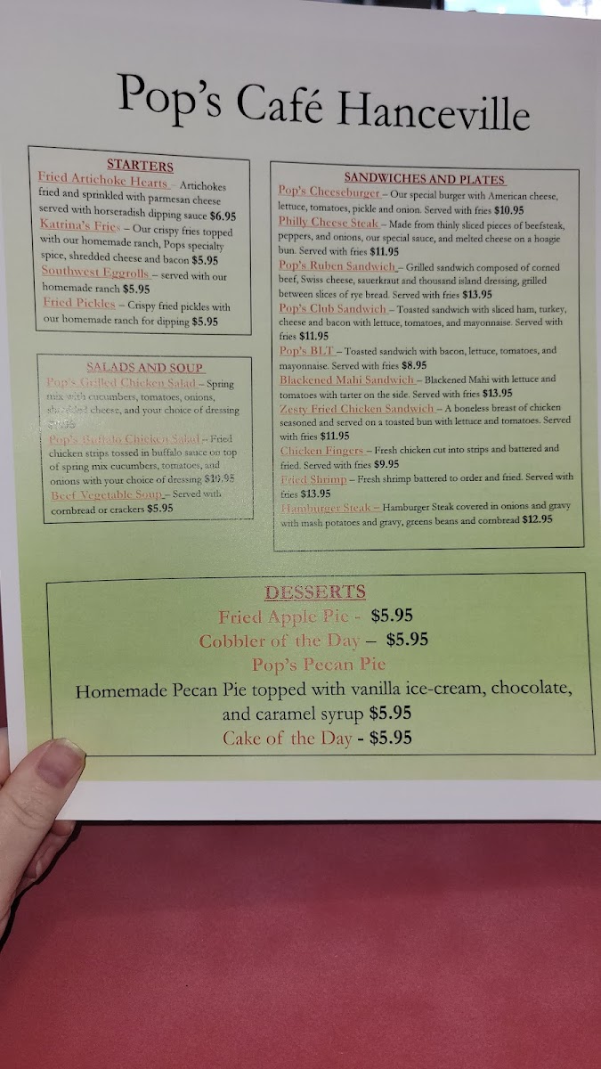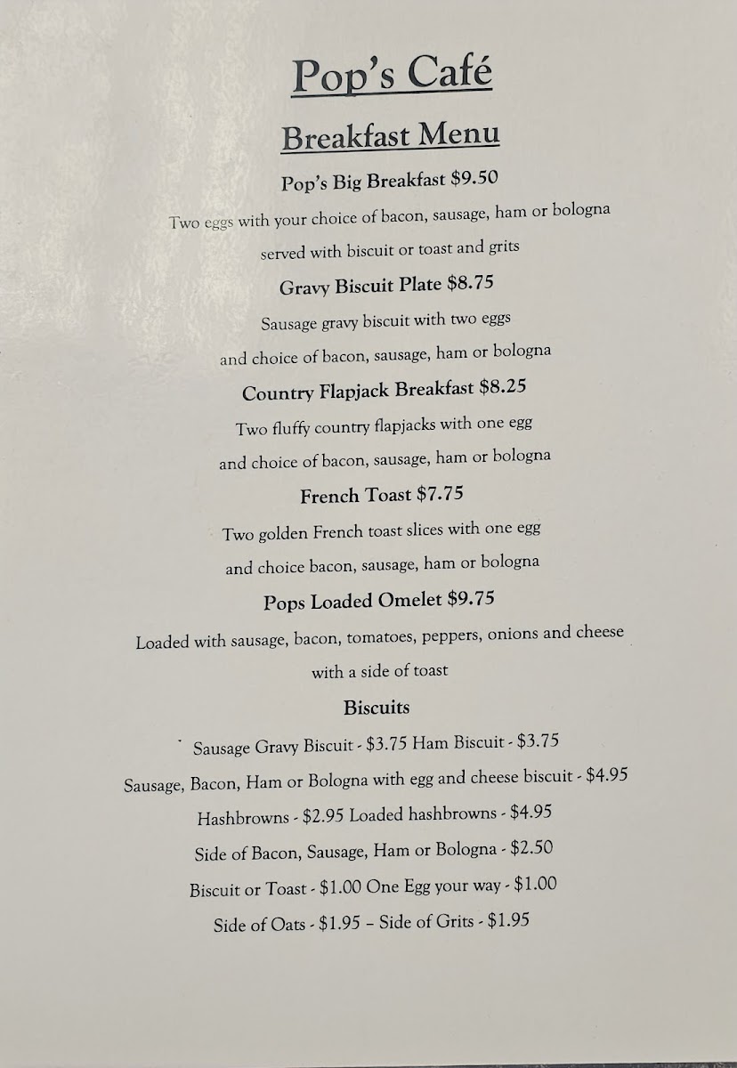 Welcome to Pop's Cafe Hanceville, the beloved local gem nestled at 814 Main St NE, Hanceville, AL. This inviting eatery specializes in comfort food that warms the heart and delights the palate. Whether you're in the mood for a juicy Pop’s Cheese Burger or a classic Philly Cheese Steak, the lunch menu never disappoints with options ranging from $8.95 to $13.95.